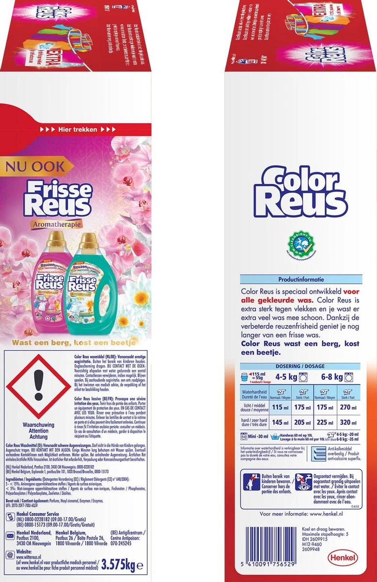 - De Color Reus waspoeder doos is gemaakt van 80% recycled karton en 100% recyclebaar!