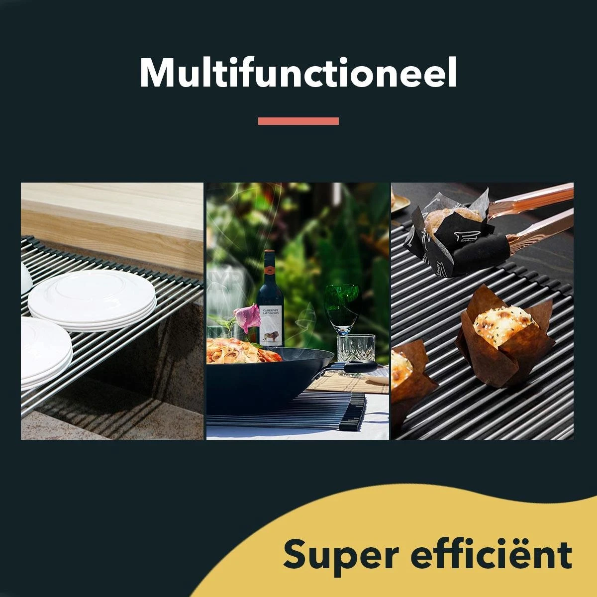 HYP. Afdruiprek Voor Afwas RVS – Pannen Rooster Hittebestendig – Afdruiprooster – Pannenonderzetter – Afkoelrooster – Camping – Rolmat