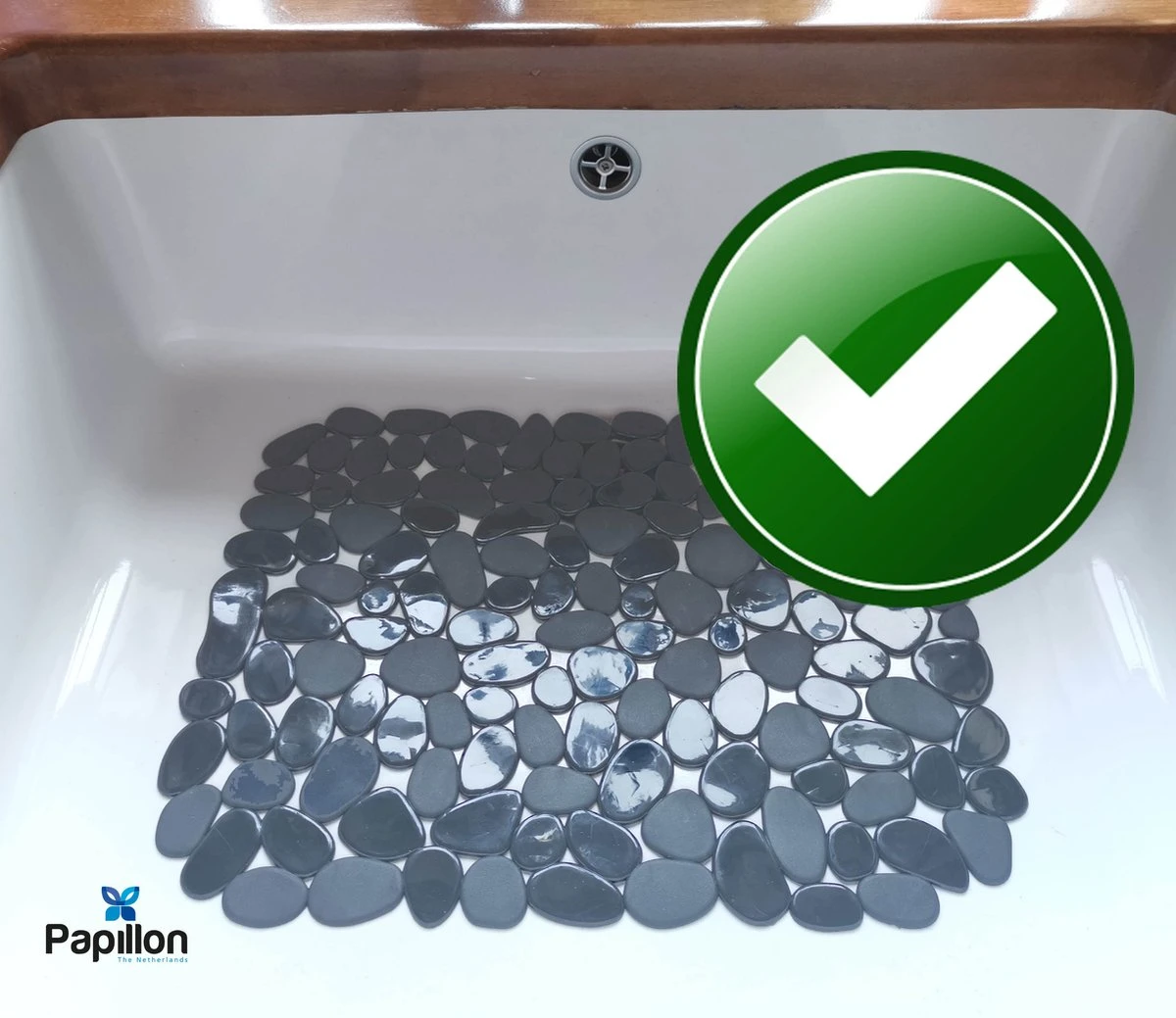 Merkloos Gootsteenmat – 40×30 Cm – Papillon Kiezels Grijs