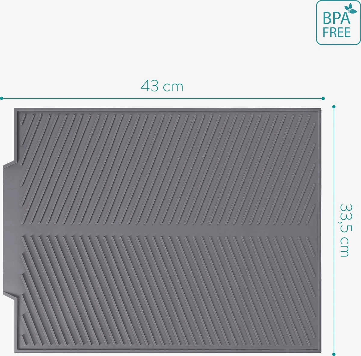 - INCLUSIEF: Je krijgt siliconenmat voor het drogen van borden en bestek, met een afvoer voor gootstenen. Afmeting 43 x 33,5 x 0,5 cm.