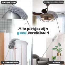 Plumeau Uitschuifbaar Tot 280cm – RVS – Telescopisch – Plumeau Met Telescoopsteel – 360° Flexibel